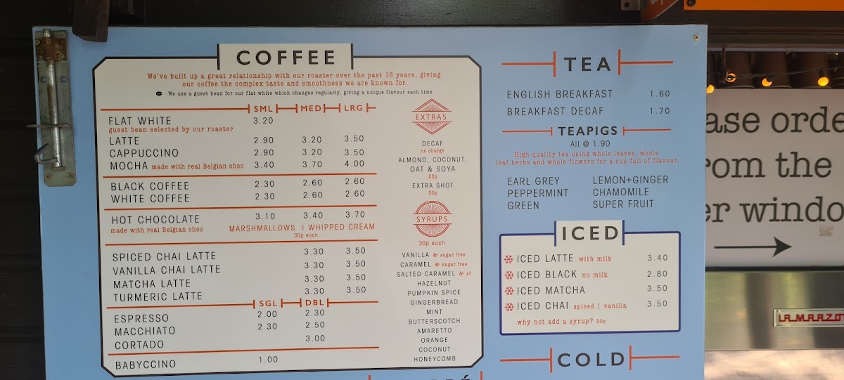 - Comforting hot drinks like lattes, chais, and cappuccinos with dairy and dairy-free options