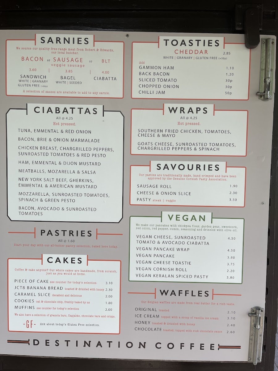 Junction 8 Cafe offers a menu that feels thoughtfully simple and approachable, perfect for a relaxed pause during a day out. The selection focuses on casual bites and comforting drinks, blending familiar café staples with a few mindful options for those seeking plant-based choices. Whether you’re stopping by for a morning pick-me-up or a mid-afternoon refreshment, the menu serves up a variety of flavours suited to the outdoorsy and easygoing vibe of its Reigate location.